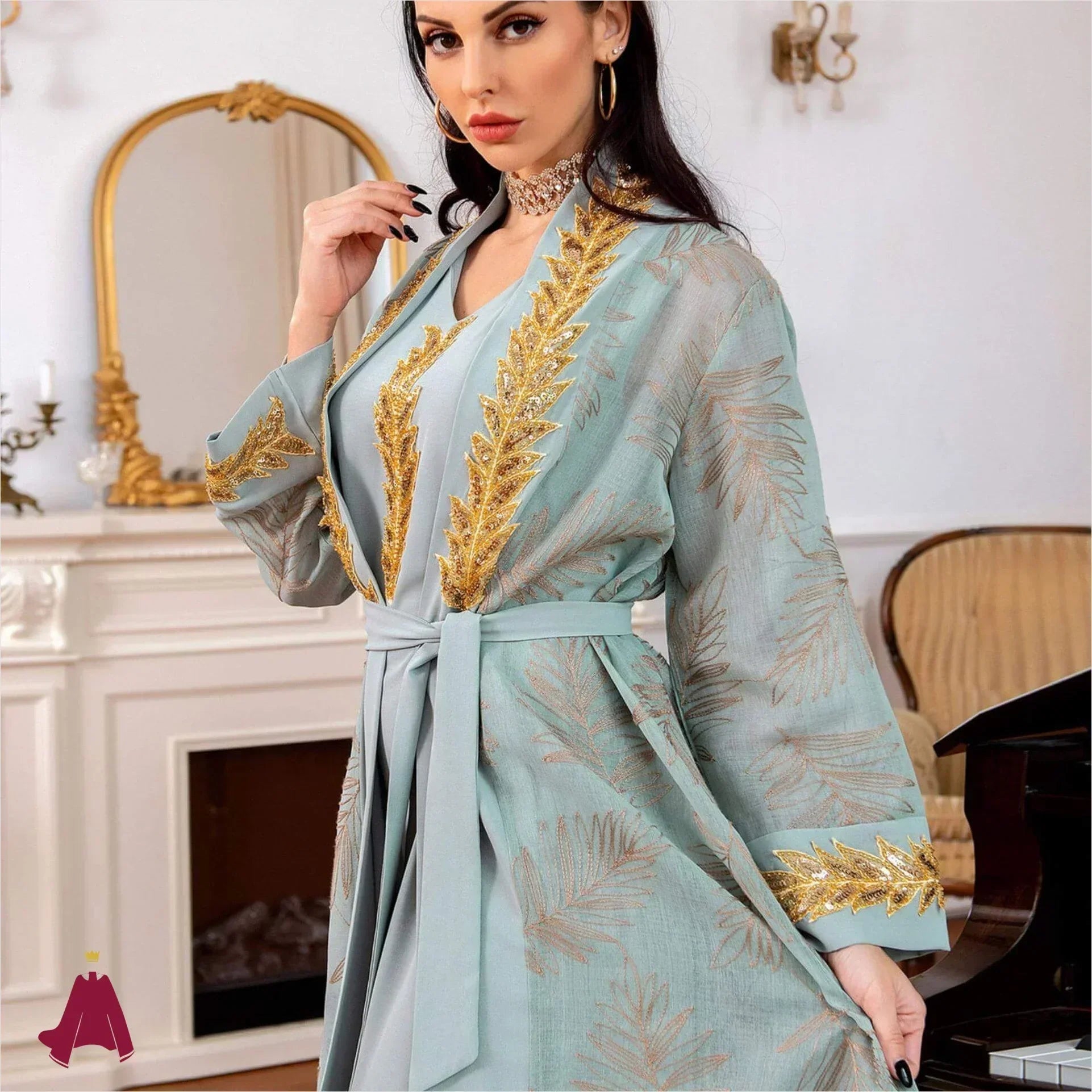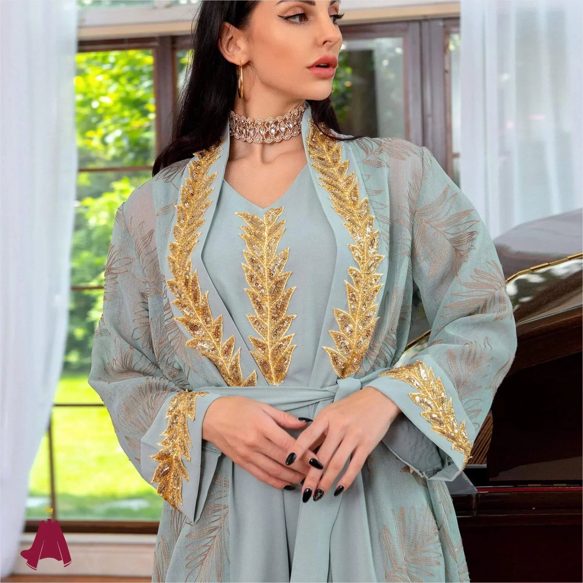 Imaginez-vous virevoltant(e) dans cette somptueuse robe à la couleur azur éclatante! Notre Takchita vous fera sentir comme une véritable diva sans égal. Sa coupe élégante et son tissu de haute qualité vous garantissent un style époustouflant et une aisance incomparable. Préparez-vous à briller plus que les étoiles avec notre Takchita!