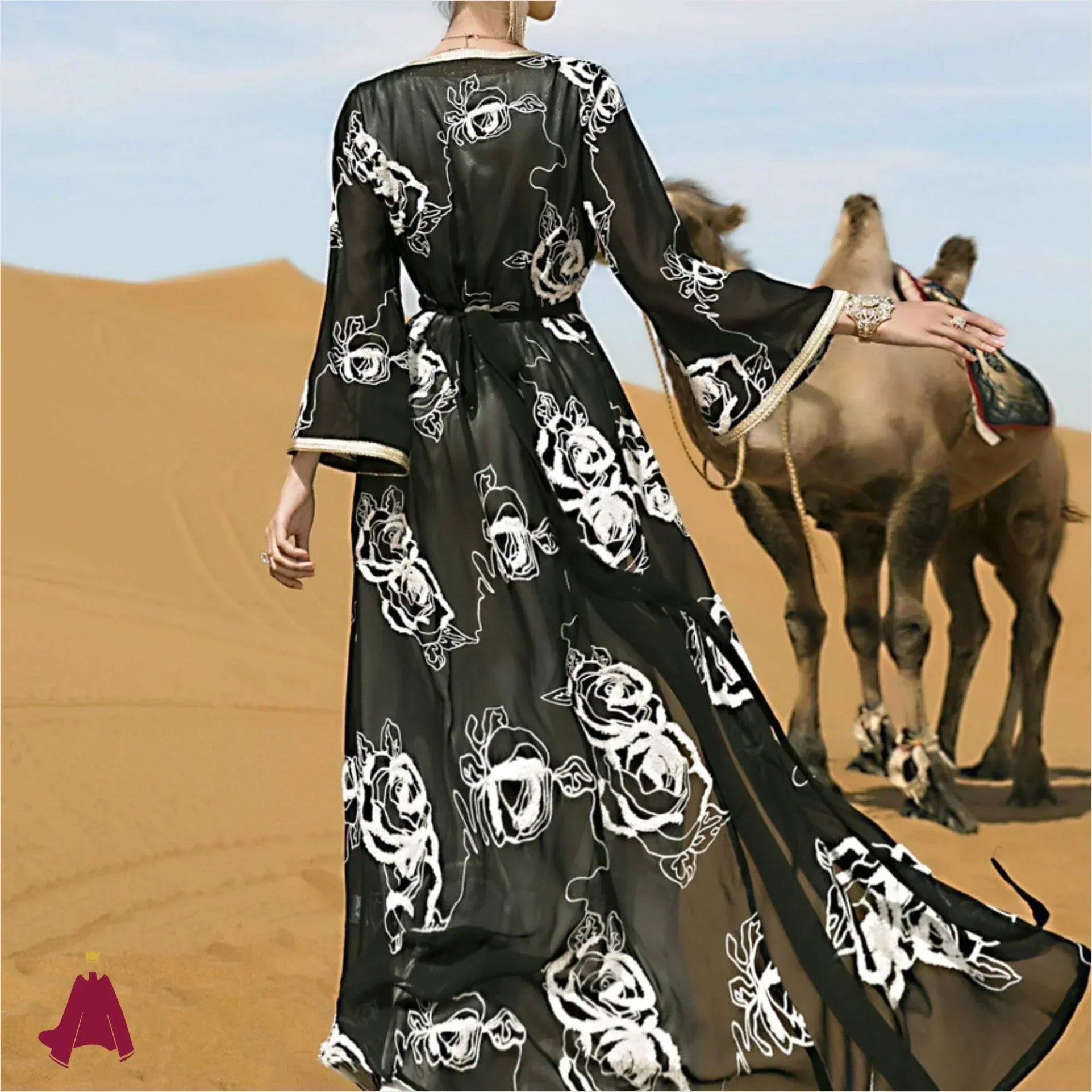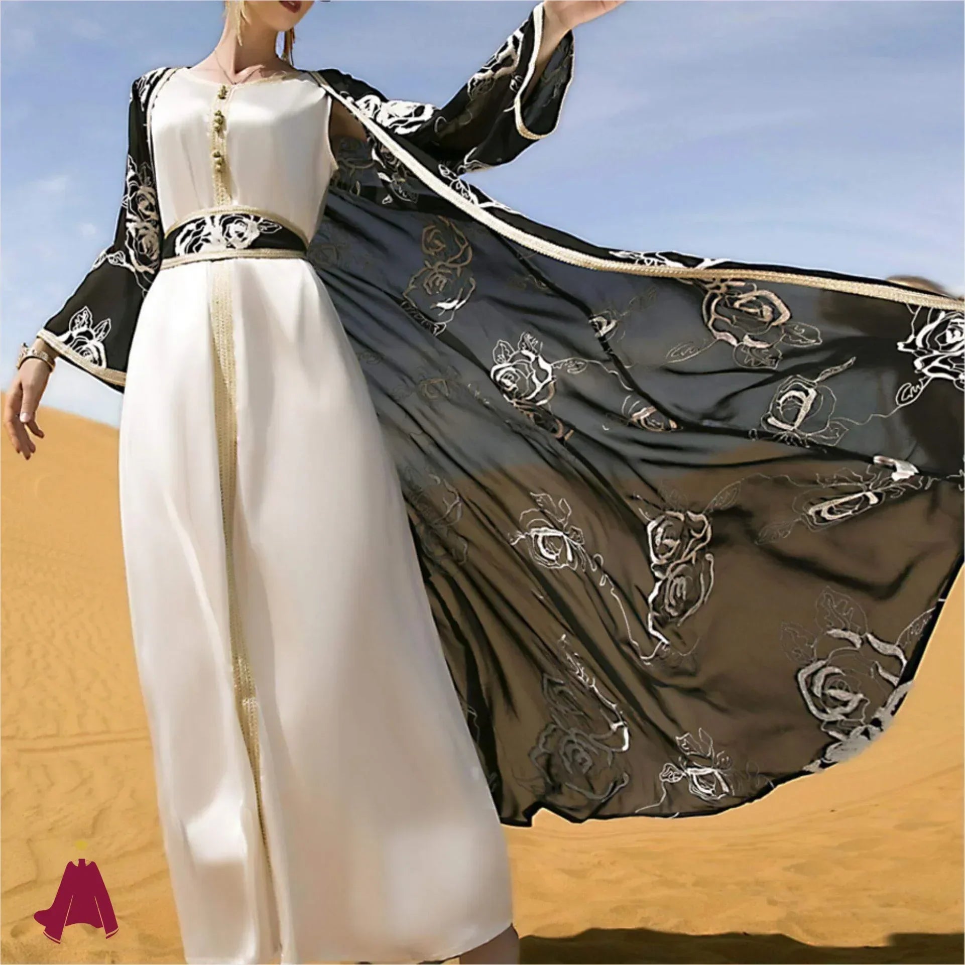 Plongez dans l'univers envoûtant de notre robe takchita, telle une panthère nocturne qui s'apprête à conquérir son territoire de charme. Vous serez irrésistiblement magnétique, promesse d'un style qui ne laisse personne indifférent. Laissez parler votre animalité mode avec ce vêtement unique et exclusif.